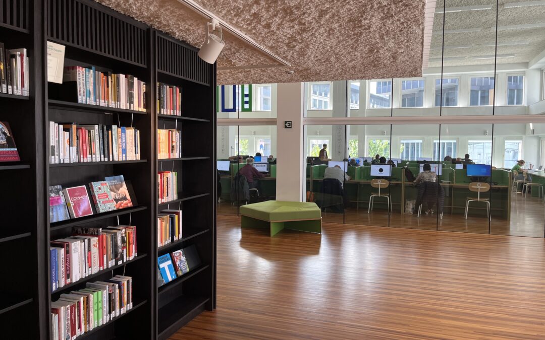 Il s’agit d’un exercice de bibliotourisme : j’ai recueilli des informations avant et après ma visite, j’ai lu le règlement intérieur et le projet d’établissement, mais l’essentiel de mon propos découle de mon expérience de visiteur. Je compléterai mes observations avec des commentaires concernant les principes de design qui sont mis en œuvre. Je terminerai en soulignant quelques points intéressants à transposer dans les bibliothèques françaises.